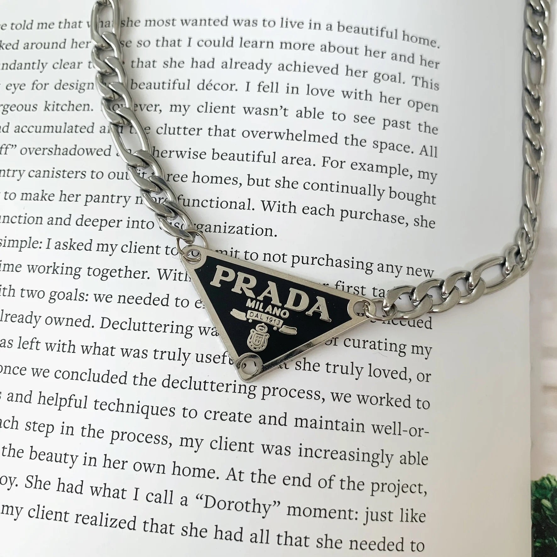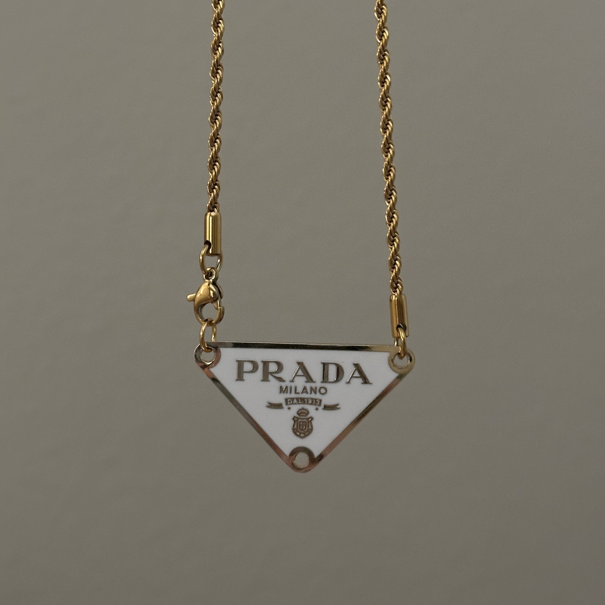 I’ve been on the hunt for a reasonably priced gold/white Prada pendant and here it is. The necklace arrived just 3 days after purchase and in time for my birthday! The pendant is as described … has a “minor imperfection” (a tiny nick in the gold). Unfortunately, the chain does feel cheap due to how lightweight it is. It has a hollow, tinny, less-dense sound. Not sure if it’s also vintage/repurposed, but there’s faded plating between the links too. At this price point I just expected a little more from the chain but it aesthetically will do. Nonetheless i love the pendant and I can’t wait to wear it out!! Thank you.